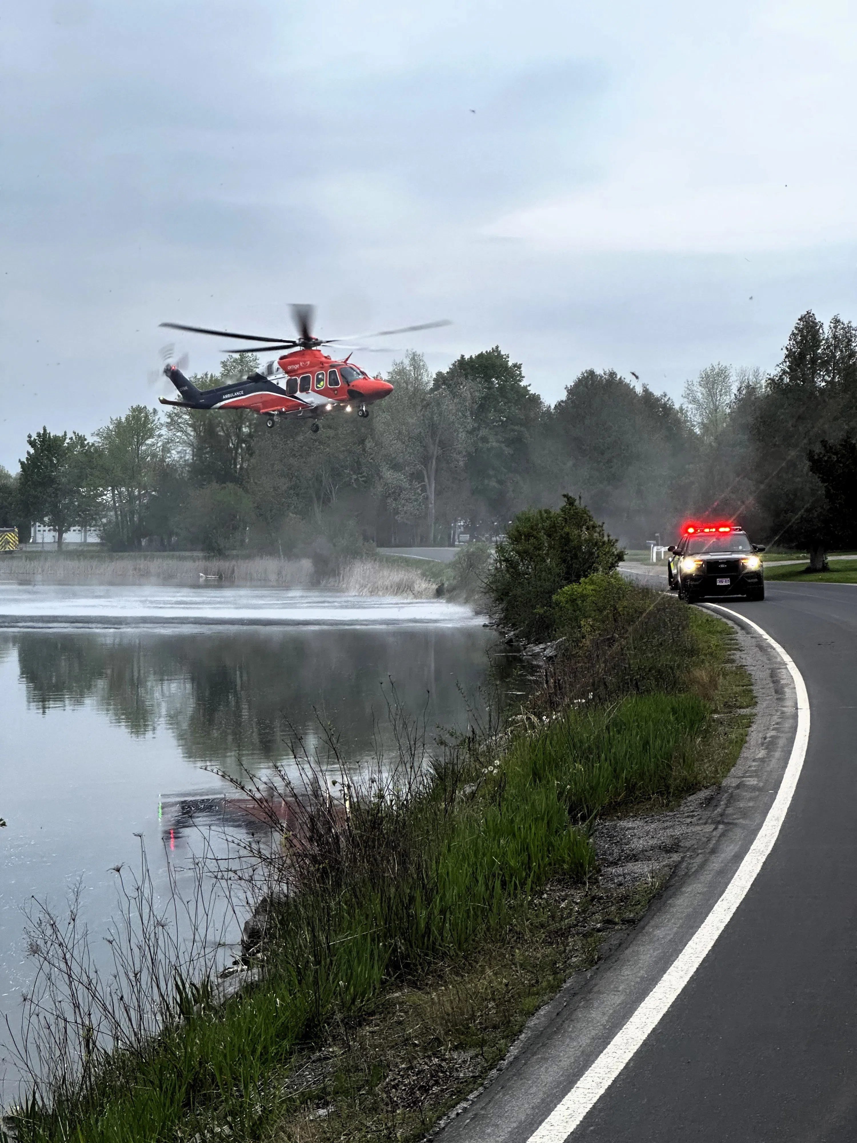 A passerby saw the motorcycle rider in the ditch waiving for help and stopped to offer assistance. Upon arrival, EMS attended to the rider, who was later transported by ORNGE Air to a trauma centre in Toronto for treatment.