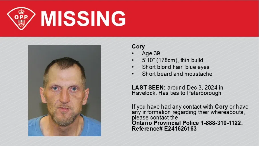 Peterborough County OPP are asking for the public’s assistance in locating a 39 year old by the name of Cory.