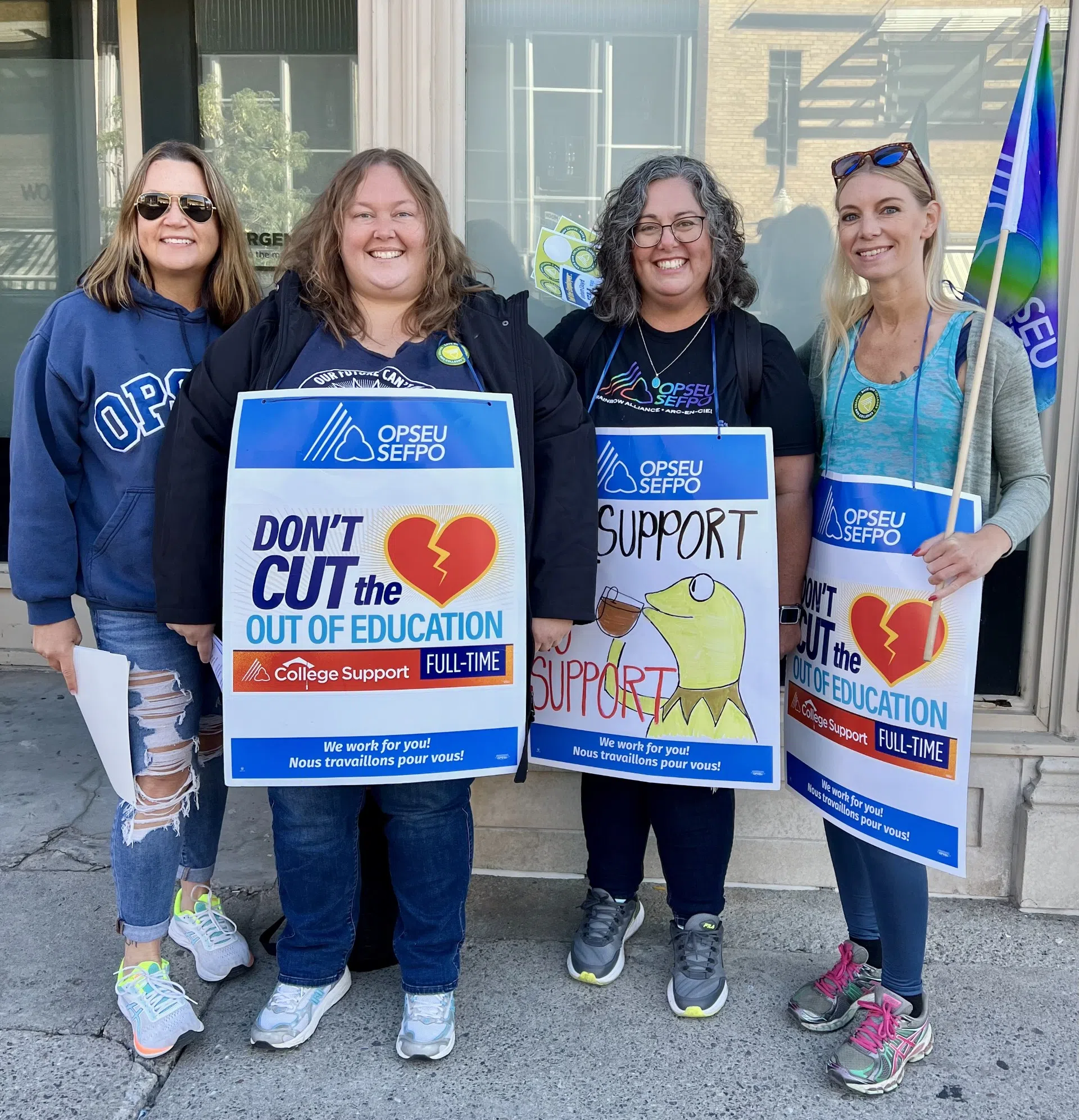 More than 10,000 support staff from all 24 public colleges remain on strike, pressing for job security, fair negotiations, and a halt to what they call the erosion of public education.