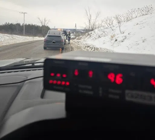 Police say an officer with the Traffic Unit clocked a vehicle travelling 96 kilometres per hour in a posted 50-kilometre-per-hour zone near Lily Lake Road at around 11:30 a.m. on Wednesday.